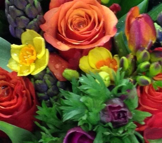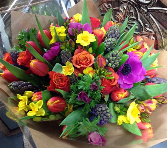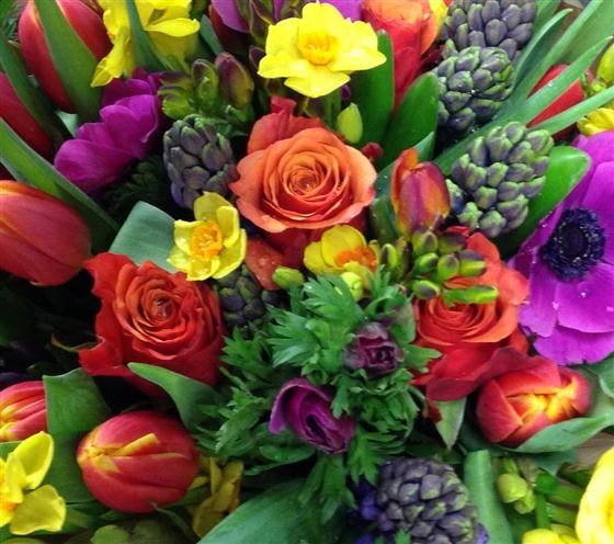Stunning bouquet with vibrant spring flowers.