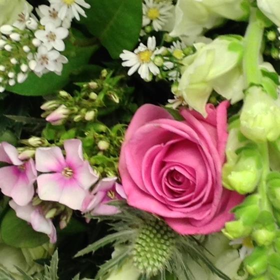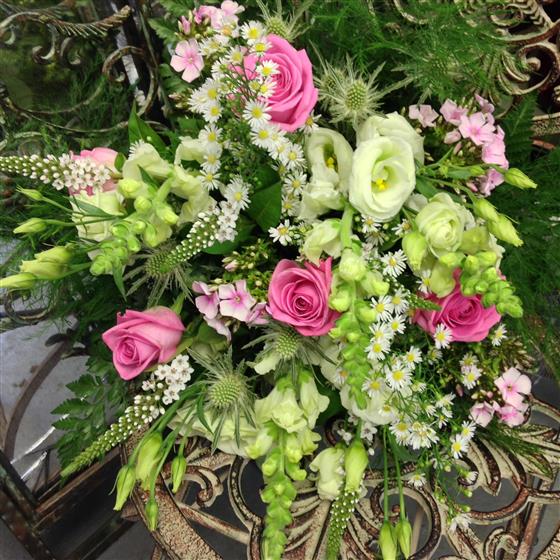 Just a lovely country bouquet! Including roses and seasonal country blooms.
