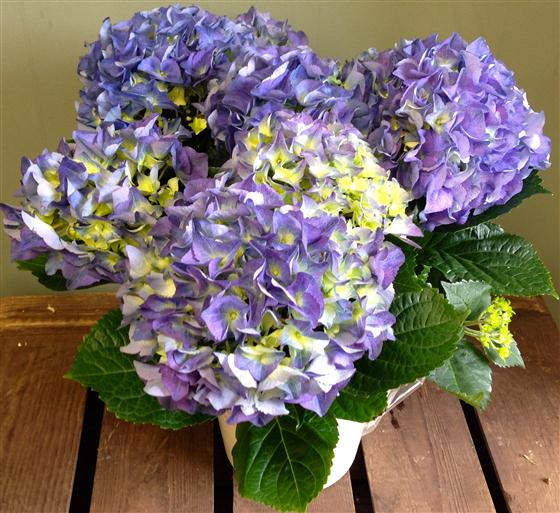 English hydrangea in a ceramic pot. Ideal for indoors but can be planted in the garden