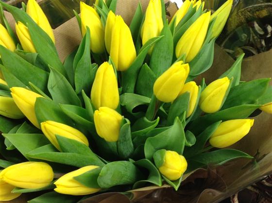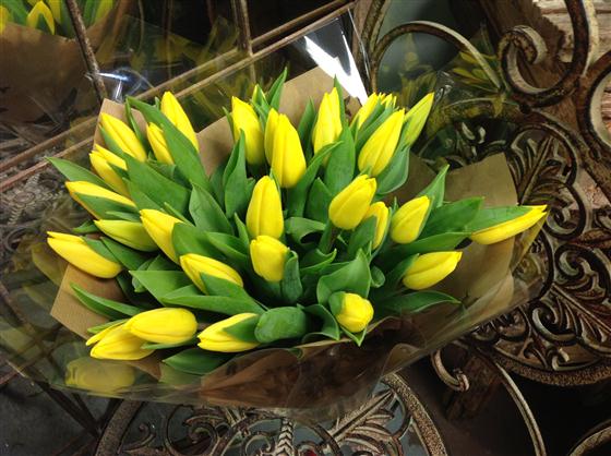 Just bring a little spring cheer! This tulip bouquet has 30 best dutch yellow tulips.
